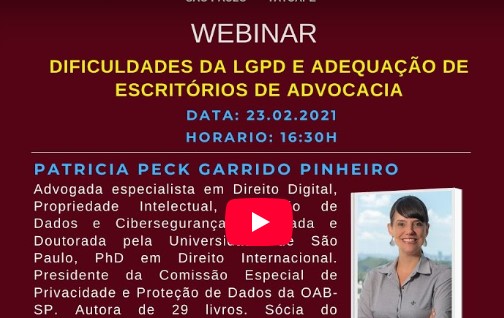 Webminar realizado pela Comissão de Direito Digital e Novas Tecnologias da OAB Tatuapé em 23/02/2021 onde tive a oportunidade de mediar as perguntas realizadas à Dra. Patrícia Peck Garrido Pinheiro,… Continue a ler »Evento: Dificuldades da LGPD e adequação de escritórios de advocacia